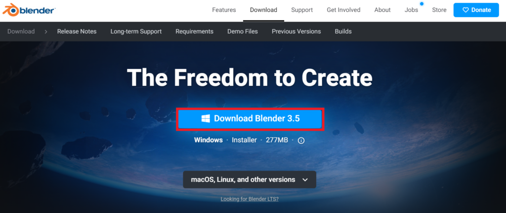 Blenderインストーラのダウンロード