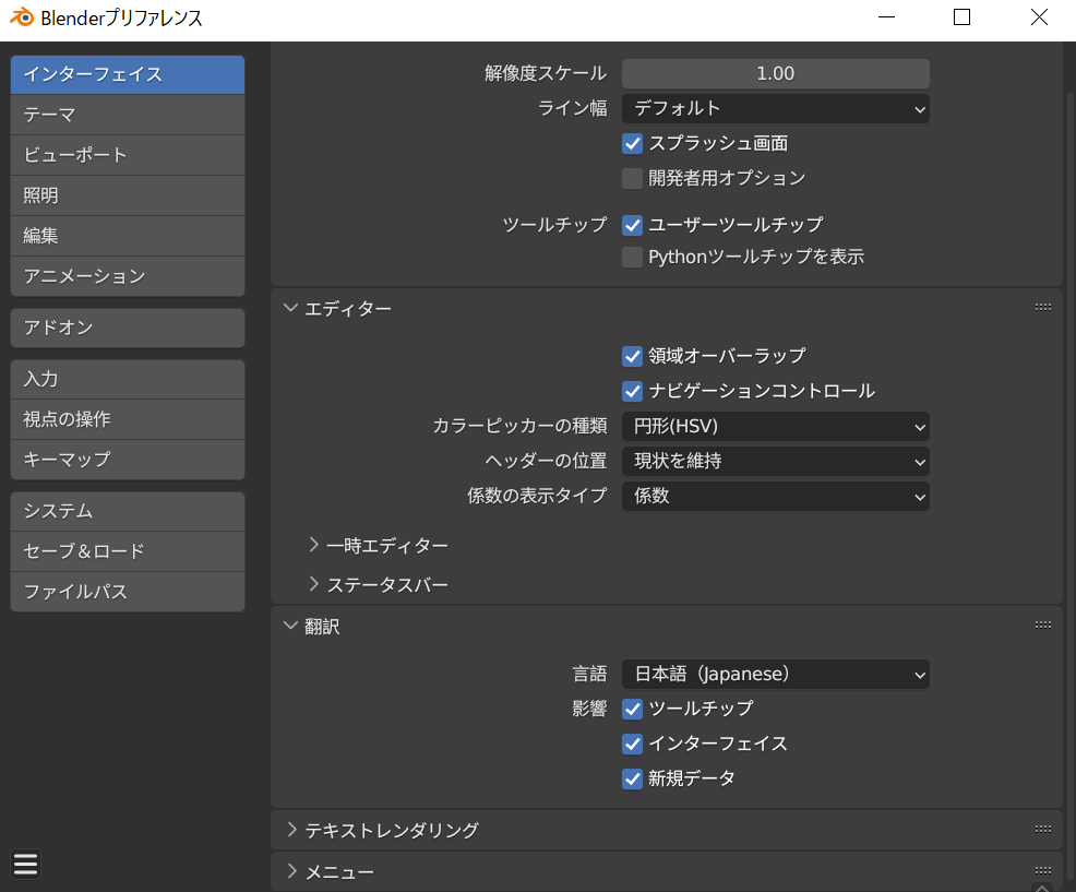 Blenderの設定